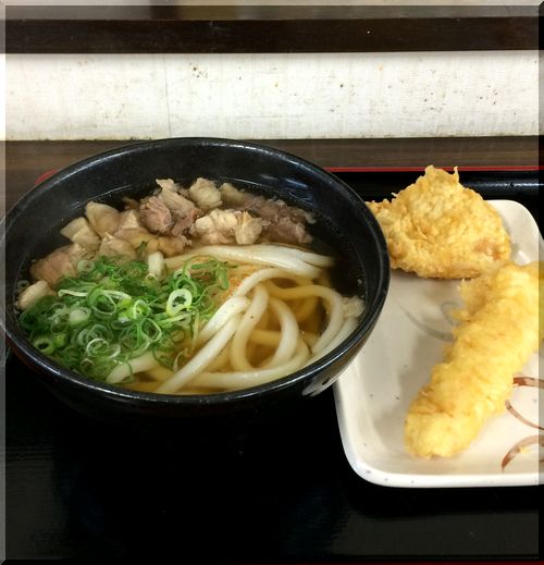 『牛すじうどん(大)鶏天、イカ天 ¥840』