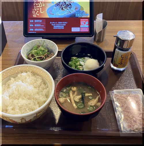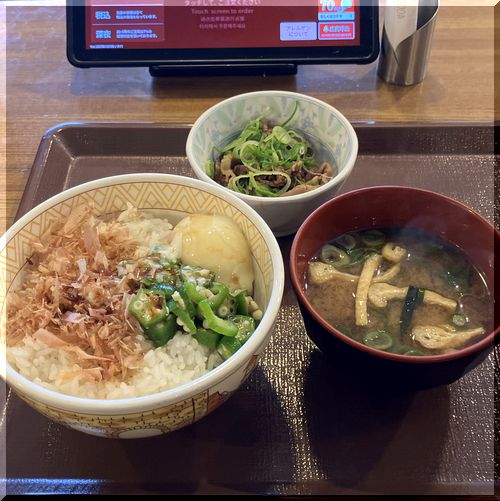 牛まぜ乗っけ朝食@朝すき