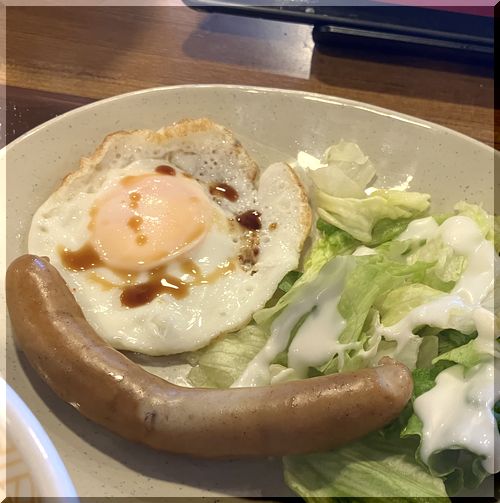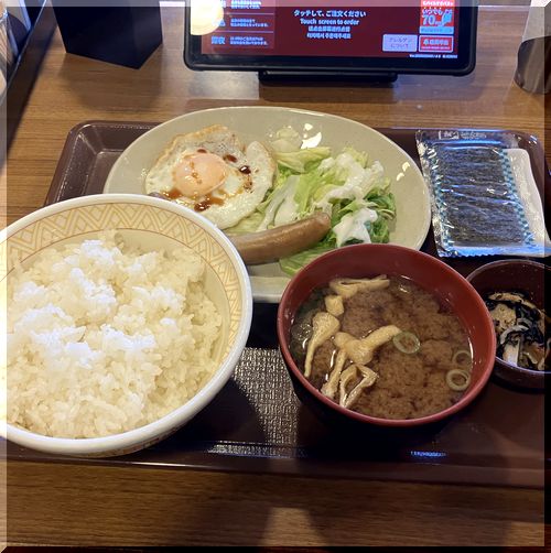 『ソーセージエッグ朝食(ご飯大) ¥470』