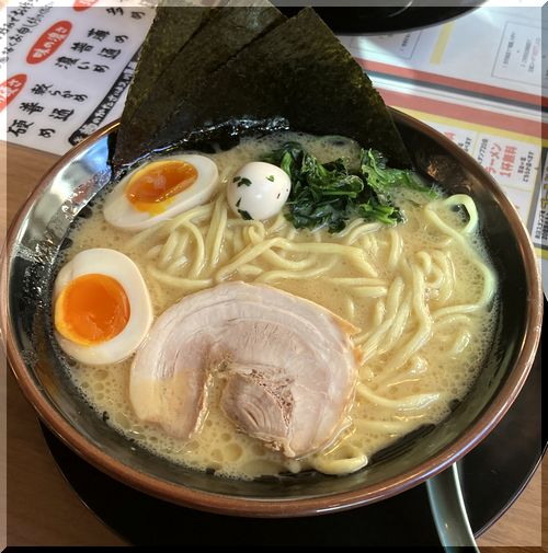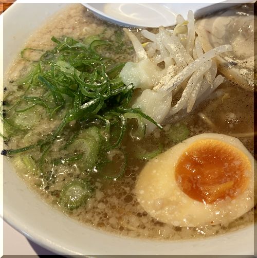 『味玉ラーメン(大、麺中太普通、味濃い、脂多め ¥1040』