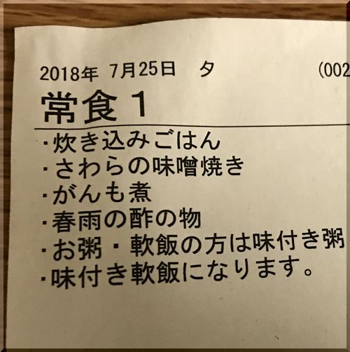 入院日記②@初日夕食